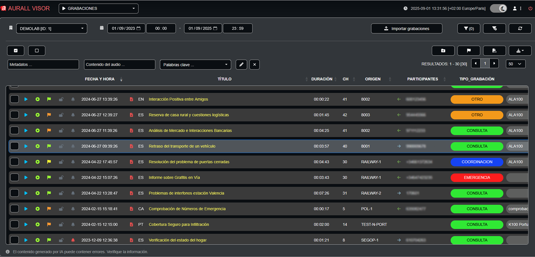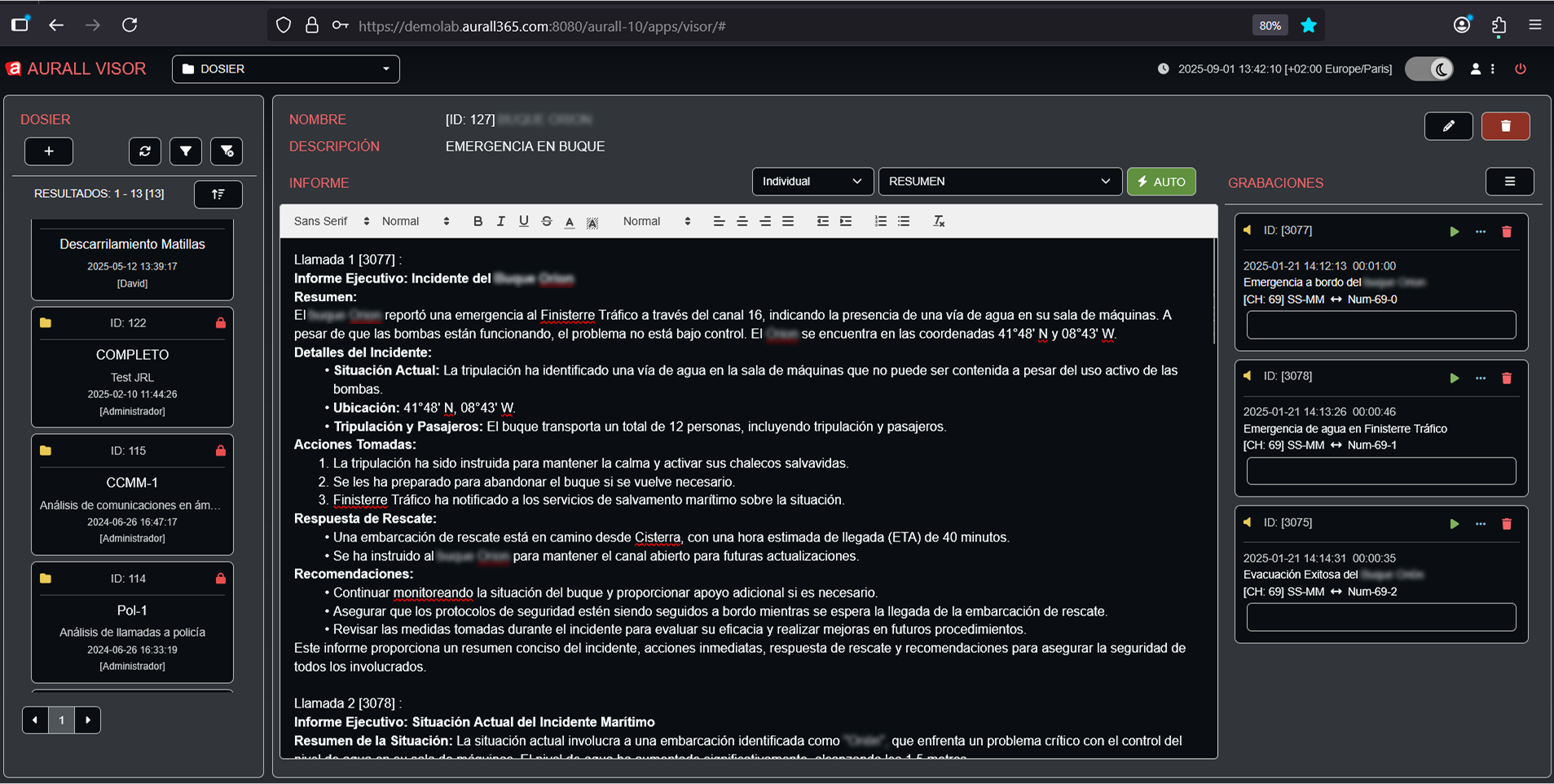 Aurall Server es la plataforma de grabación segura para comunicaciones críticas. Garantiza las 5 claves de seguridad—trazabilidad total, confidencialidad, disponibilidad, integridad y autenticidad—con auditoría completa, cifrado y control de accesos, alta resiliencia y evidencia digital. Todo bajo tu control, on-premise o en la nube.